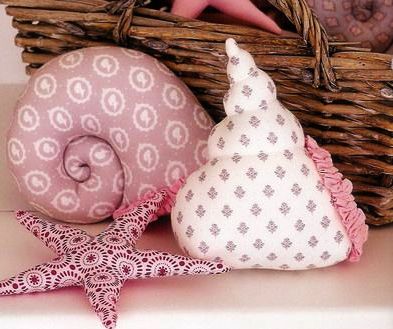 Estas conchas de tecido são saches ou enfeites para seu quarto de banho.